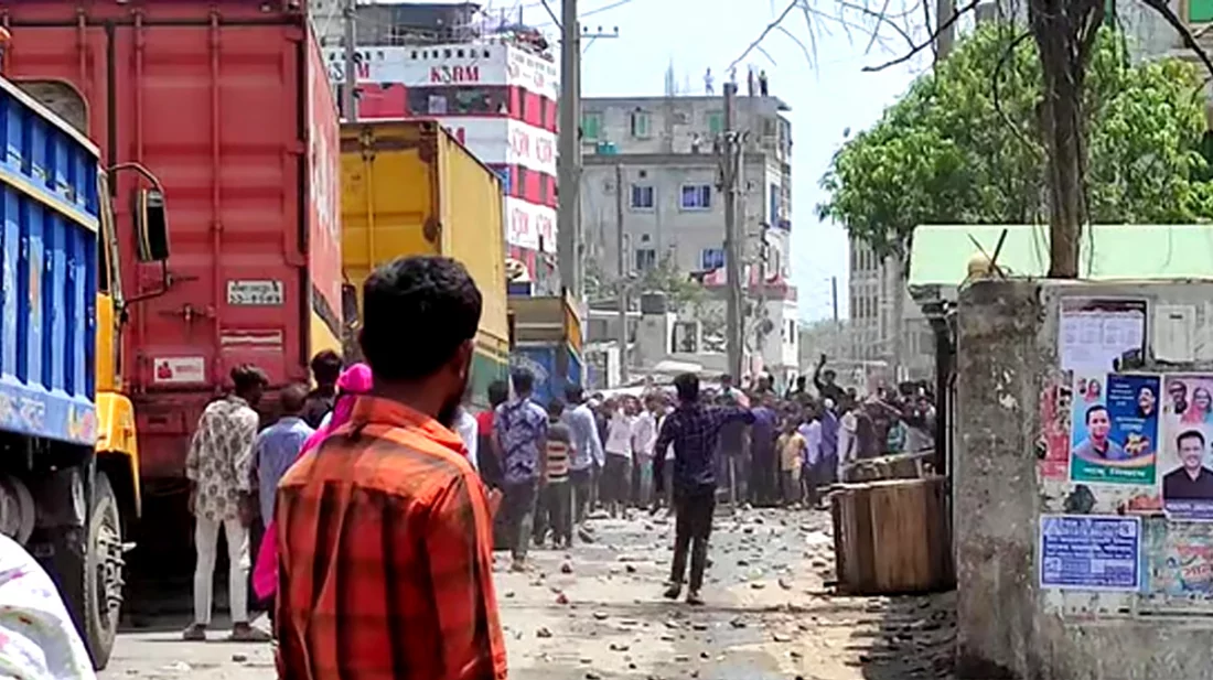 এরপরই বকেয়া বেতনের দাবিতে ক্ষুব্ধ শ্রমিকরা বিক্ষোভ করলে তাদের ছত্রভঙ্গ করতে লাঠিচার্জ ও জলকামান দিয়ে পানি ছুড়ে পুলিশ। জবাবে পাল্টা ইট-পাটকেল নিক্ষেপ করতে থাকে শ্রমিকরা৷ এ সময় পুলিশকে কয়েক রাউন্ড কাঁদানে গ্যাস ও শর্টগানের গুলি ছুড়তে দেখা যায়৷ বেলা ১টা পর্যন্ত এ সংঘর্ষ চলছিল৷