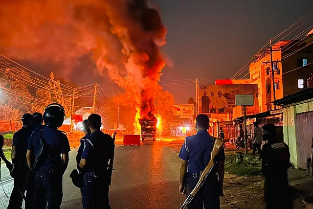 বিক্ষুব্ধ শিক্ষার্থীদের সড়ক অবরোধ, বাসে আগুন