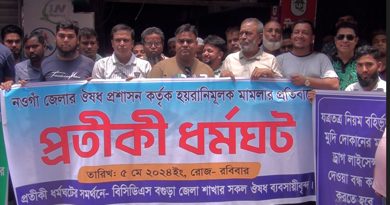 দুই ওষুধ ব্যবসায়ীকে জেল জরিমানা করার প্রতিবাদে এবং হয়রানী মূলক ভ্রাম্যমাণ আদালতের মামলা প্রত্যাহারের দাবিতে বাংলাদেশ কেমিস্ট এন্ড ড্রাগিস্ট বগুড়ায় জেলা শাখার আয়োজনে দোকান বন্ধ রেখে প্রতীকী ধর্মঘট করেছেন ওষুধ ব্যবসায়ীরা। রোববার সকাল ১১টায় শহরের মেরিনা রোড়ে এ প্রতীকী অনশন ধর্মঘট করেন ব্যবসায়ীরা।