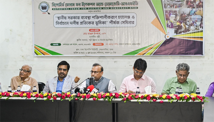 শনিবার (৮ জুন) সকালে রিপোর্টার্স ফোরাম ফর ইলেকশন এন্ড ডেমোক্রেসি (আরএফইডি) কর্তৃক আয়োজিত স্থানীয় সরকার শক্তিশালীকরণে চ্যালেঞ্জ ও নির্বাচনে দলীয় প্রতীকের ভূমিকা শীর্ষক সেমিনার শুরুতে সংবর্ধনা অনুষ্ঠানে প্রধান অতিথির হিসেবে স্থানীয় সরকারমন্ত্রী এসব কথা বলেন।
