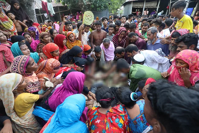 পদ্মা নদীতে গোসলে নেমে মারা যাওয়া তিন শিশু–কিশোর মরদেহ উদ্ধারের পর স্বজন–গ্রামবাসীদের ভিড়। সোমবার দুপুর ২টার দিকে পাবনা সদরের চরতারাপুর ইউনিয়নের গোহাইলবাড়ি গ্রামেছবি