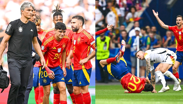 তরুণ আর অভিজ্ঞদের মিশেলে গড়া স্পেন দল দুর্দান্ত সময় পার করছে। ইউরোপিয়ান চ্যাম্পিয়নশিপ শুরুর আগে থেকেই দে লা ফুয়েন্তের দলটি ছিল শক্ত ফেবারিটদের একটি। এবার আরেক ফেবারিট ও আয়োজক জার্মানিকে বিদায় করে সে কথা স্পেন আরেকবার প্রমাণ করেছে। ২-১ গোলের জয়ে তারা উঠেছে ইউরোর সেমিফাইনালে। তবে তাতেও স্বস্তির সুযোগ নেই, কারণ কার্ড ও ইনজুরিজনিত কারণে স্প্যানিশরা সেমিতে ন্যূনতম তিন তারকাকে পাচ্ছে না।