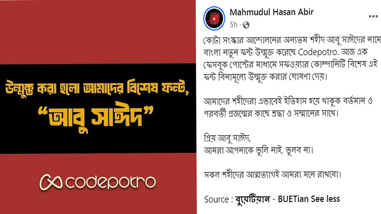 এবার গুলিতে নিহত আবু সাঈদের নামে বাংলা ফন্ট