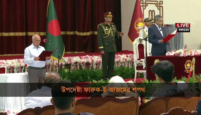 অন্তর্বর্তী সরকারের আরেক উপদেষ্টা হিসেবে ফারুক-ই-আজম শপথ নিয়েছেন। মঙ্গলবার (১৩ আগস্ট) বেলা ১১টায় বঙ্গভবনে রাষ্ট্রপতি মো. সাহাবুদ্দিন তাকে শপথবাক্য পাঠ করান। এর আগে গত ৮ আগস্ট প্রধান উপদেষ্টাসহ ১৪ জন উপদেষ্টা শপথ নিয়েছিলেন। তারপর রবিবার (১১ আগস্ট) আরও দুই উপদেষ্টা শপথ নেন।
