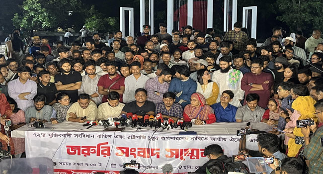 ১৯৭২ সালের সংবিধানের অবসান এবং অন্যান্য রাজনৈতিক সংকট নিরসনে বৈষম্যবিরোধী ছাত্র আন্দোলন এবং জাতীয় নাগরিক কমিটি ‘জাতীয় ঐক্যের’ আহ্বান জানিয়েছে।