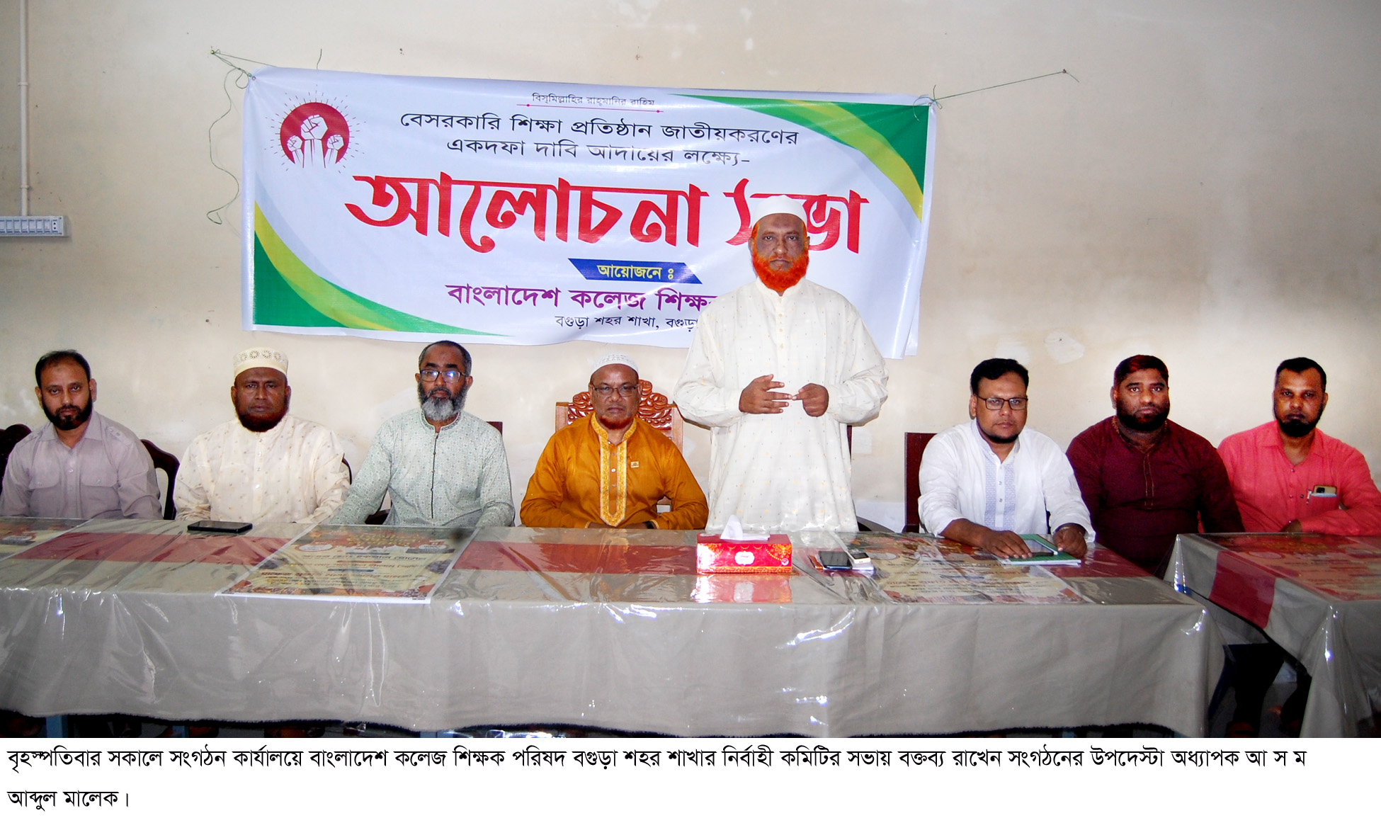 বাংলাদেশ কলেজ শিক্ষক পরিষদ ,বগুড়া শহর শাখার উদ্যোগে পরিষদের নির্বাহী কমিটির সভা অধ্যাপক আব্দুল ওয়াহাবের সভাপতিত্বে ও হাবিবুর রহমান আকন্দের পরিচালনায় অনুষ্ঠিত হয়।