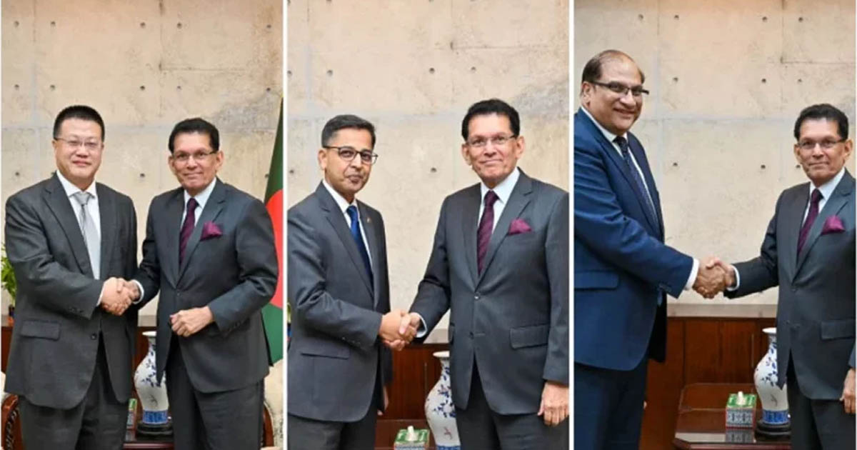 পররাষ্ট্রমন্ত্রী ড. খলিলুর রহমানের সঙ্গে চীন, ভারত ও পাকিস্তানের রাষ্ট্রদূতরা পৃথকভাবে সৌজন্য সাক্ষাৎ করেছেন। নবগঠিত সরকারের অধীনে বাংলাদেশের সঙ্গে দ্বিপক্ষীয় সম্পর্ক আরও জোরদার করার প্রতিশ্রুতি পুনর্ব্যক্ত করেছেন তাঁরা। রবিবার পররাষ্ট্র মন্ত্রণালয়ের এক সংবাদ বিজ্ঞপ্তিতে এই তথ্য জানানো হয়েছে।