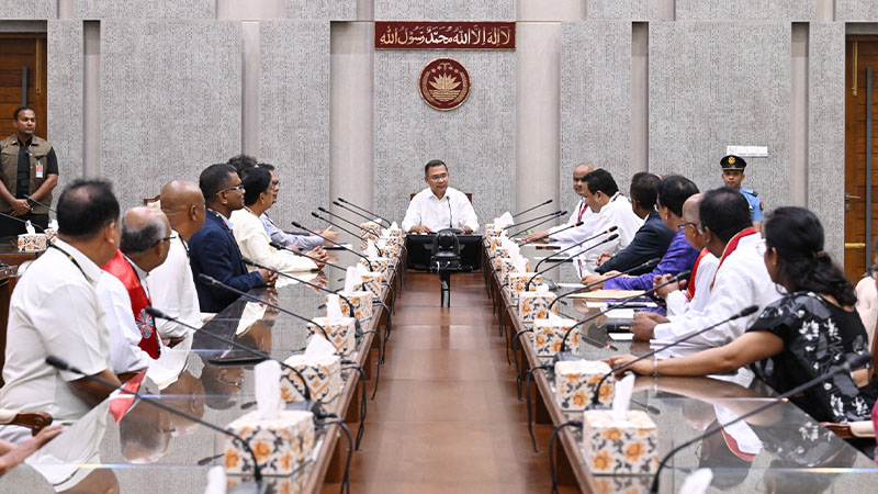 প্রধানমন্ত্রী তারেক রহমানের সঙ্গে শুভেচ্ছা বিনিময় করেছেন প্রোটেস্ট্যান্ট চার্চের নেতৃবৃন্দ।‘ইস্টার সানডে’ উপলক্ষে আজ সকালে বাংলাদেশ সচিবালয়ে প্রধানমন্ত্রীর কার্যালয়ের মন্ত্রিপরিষদ বিভাগে এ শুভেচ্ছা বিনিময় অনুষ্ঠিত হয়।