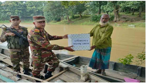বন্যায় ক্ষতিগ্রস্তদের মাঝে সেনাবাহিনীর সহায়তা প্রদান
