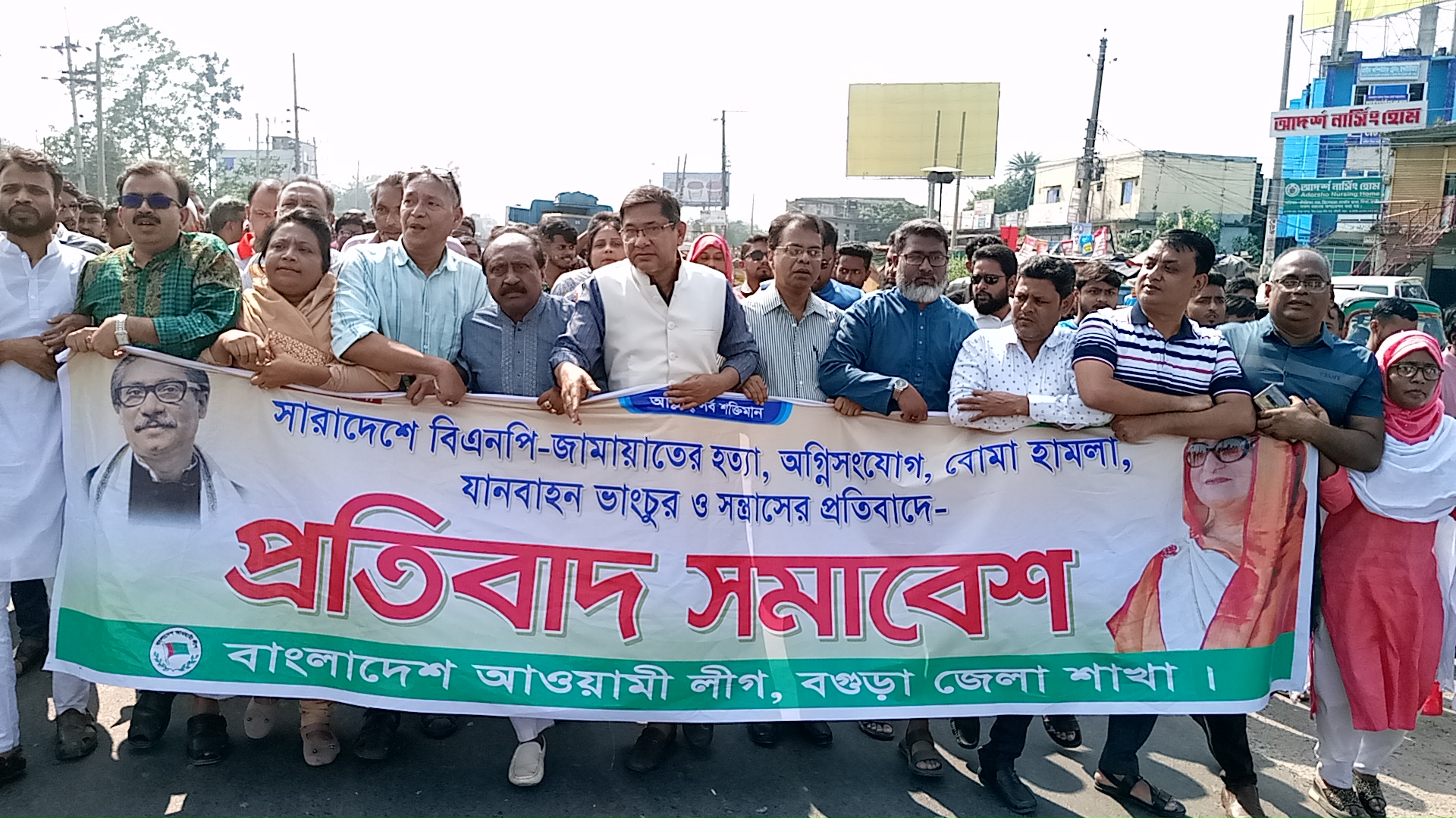 বগুড়া জেলা আওয়ামী লীগের আয়োজনে বিক্ষোভ ও প্রতিবাদ সমাবেশ