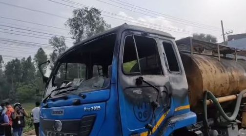 বগুড়ায় অবরোধের শেষদিনে পানিবাহী ট্রাকে আগুন