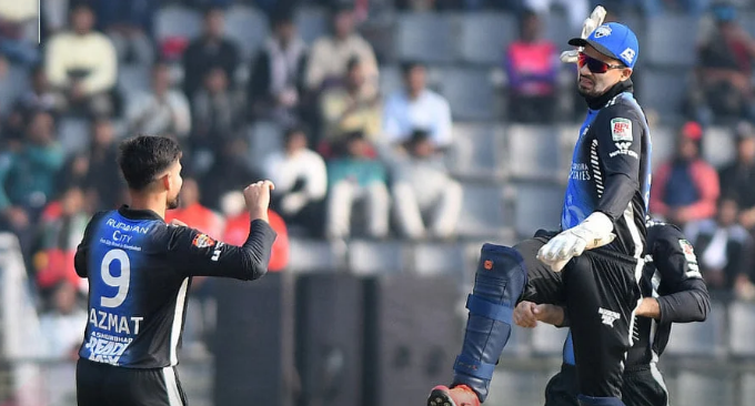 বারব ব্যক্তিগত ৩৭ রানে সাজঘরে ফেরেন। ফজলে মাহমুদ থামেন ৩০ রানে। এরপর শামীম হোসেন পাটোয়ারী ১৪ রানে ফেরেন। তবে আজমতউল্লাহ ওমরজাই ২০ বলে ৩৬ রানের ইনিংস খেলে দলকে এগিয়ে দেন লড়াকু সংগ্রহের দিকে।