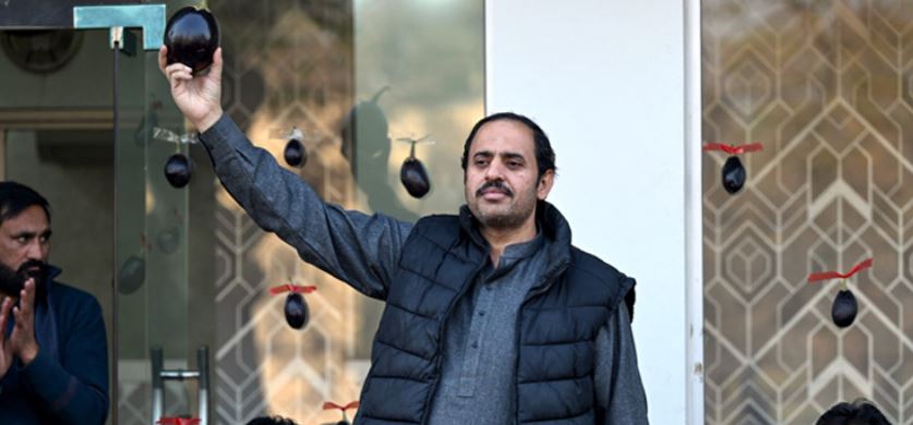 বেগুন: কারাবন্দি ইমরান খানের সমর্থক এবং ইসলামাবাদের প্রার্থী আমির মুঘলকে নির্বাচনী প্রতীক হিসেবে বেগুন বরাদ্দ দেওয়া হয়েছে। এটিকে উদ্দেশ্যপূর্ণ মনে করলেও বিষয়টি সামলে নিয়েছেন তিনি। নির্বাচনী সমাবেশগুলোতে বেগুনকে মাসকটে পরিণত করেন আমির। তবে তার এই প্রচারণার ফলে বেগুনের দাম বেড়ে গেছে বলে অভিযোগ উঠেছে।