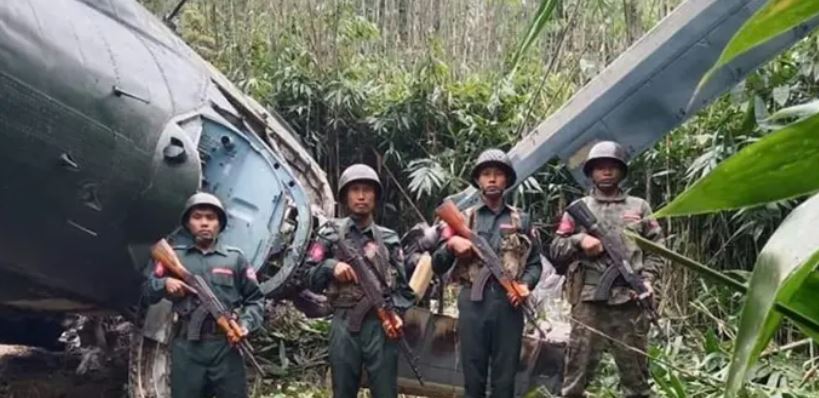মিয়ানমার ন্যাশনাল ডেমোক্রেটিক অ্যালায়েন্স আর্মি এবং তাং ন্যাশনাল লিবারেশন আর্মির সঙ্গে যুক্ত হয়ে আরাকান আর্মি গঠন করেছে ত্রিপক্ষীয় থ্রি ব্রাদারহুড অ্যালায়েন্স। এই জোট গত অক্টোবর থেকে শান রাজ্যের উত্তরে ‘অপারেশন ১০২৭’ নামে সামরিক জান্তাবিরোধী যুদ্ধ তীব্র থেকে তীব্রতর করে তুলেছে। মধ্য নভেম্বরে এই অপারেশনের অংশ হিসেবে সামরিক জান্তার সেনাদের বিরুদ্ধে রাখাইনে আক্রমণ চালায় আরাকান আর্মি। ৪ঠা ফেব্রুয়ারি টেলিগ্রামে আরাকান আর্মি কিছু ছবি পোস্ট করে। এতে ত্রিপক্ষীয় ব্রাদারহুড অ্যালায়েন্সের সদস্যদেরকে বিধ্বস্ত একটি হেলিকপ্টারের পাশে দাঁড়ানো অবস্থায় দেখা যায়। এতে প্রমাণিত হয় যে, আরাকান আর্মির পাশাপাশি জোটের অন্য দুটি গ্রুপও আরাকান রাজ্যে যুদ্ধ চালিয়ে যাচ্ছে। ঠিক ওই সময়ে হেলিকপ্টার বিধ্বস্ত হওয়া নিয়ে কোনো মন্তব্য করেনি আরাকান আর্মি। এই হেলিকপ্টারকে ভূপাতিত করার দাবি করলেও, কিভাবে তা করা হয়েছে, এক্ষেত্রে কি ধরনের অস্ত্র ব্যবহার করা হয়েছে, তা প্রকাশ করেনি এই গ্রুপটি।