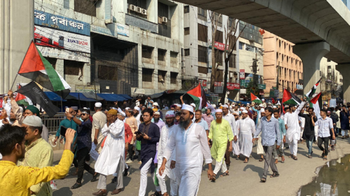জাতীয় মসজিদ বায়তুল মোকাররমে জুমার নামাজ শেষে ফিলিস্তিনের পক্ষে মুসল্লিদের বিক্ষোভ মিছিল অনুষ্ঠিত হয়েছে। শুক্রবার নামাজ শেষে একদল মুসল্লি পতাকা উঁচিয়ে ‘নারায়ে তাকবির, আল্লাহু আকবর’ স্লোগান দিয়ে মিছিল শুরু করে।…