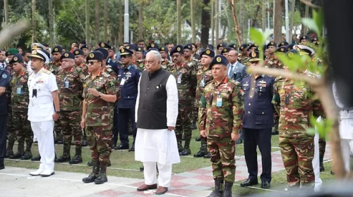 রাজধানীর বনানীর সামরিক কবরস্থানে পিলখানা হত্যাকাণ্ডে শহীদদের প্রতি শ্রদ্ধা নিবেদন করেন স্বরাষ্ট্রমন্ত্রী আসাদুজ্জামান খান, তিন বাহিনীর প্রধান ও অন্যরাছবি: সাজিদ হোসেন স্বরাষ্ট্রন্ত্রী আসাদুজ্জামান খান বলেন, ‘পিলখানায় অনেক বড় হত্যাযজ্ঞ হয়েছিল।…